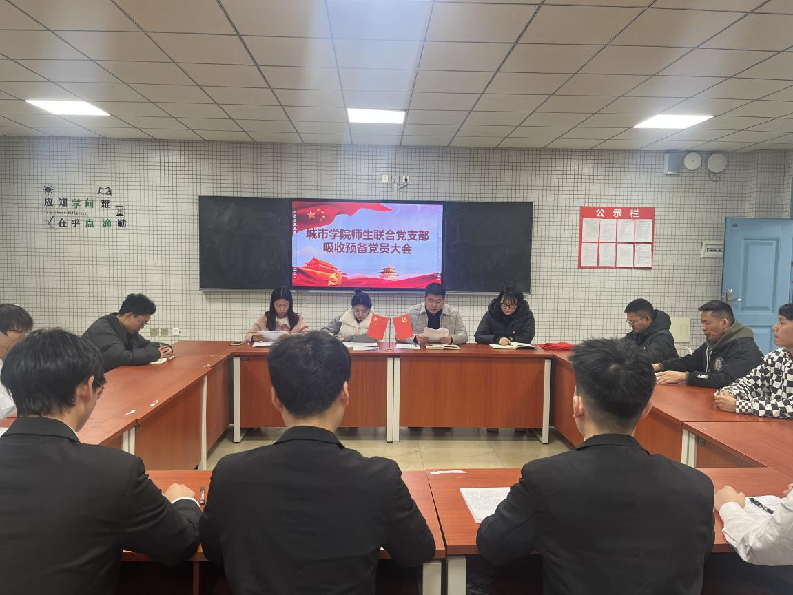 2025年11月20日,城市学院师生联合党支部在2教509教室召开了吸收预备党员大会。会议由党支部组织委员邓小兰主持,党支部书记谢亮同志以及各教师党员代表与会,本次拟发展的8名发展对象参会。