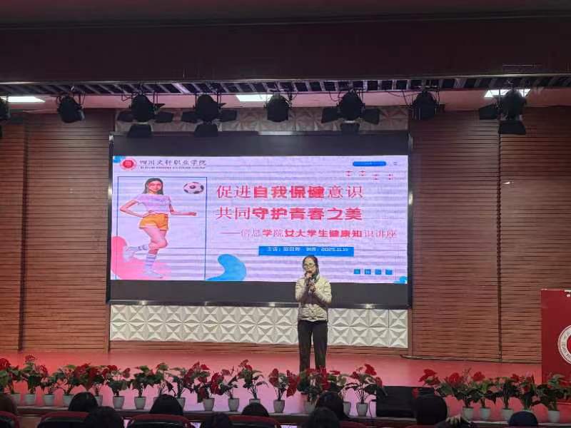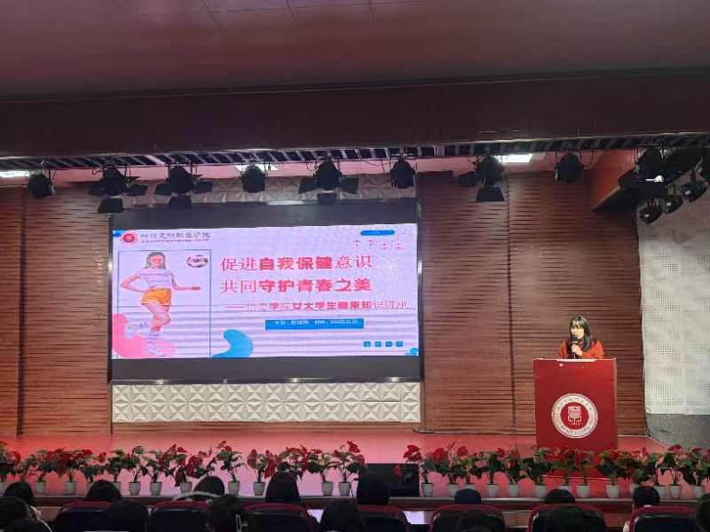 为加强女生健康教育,增强自我保健意识和健康管理能力,帮助同学们树立正确的健康观念。于2025年12月10日,我院在阶梯教室举办了一场主题为“促进自我保健意识,共同守护青春之美”的女生健康知识讲座 。参会女生400多名,由学院学工办主任马莉主持,学院副院长陈国辉以生动的语言和丰富的案例,围绕女性生理健康、心理健康、安全与性教育、自我保护等多个方面进行了深入浅出的讲解。同学们认真聆听,积极互动,纷纷表示收获颇丰,对健康知识有了更全面、更深入了解。