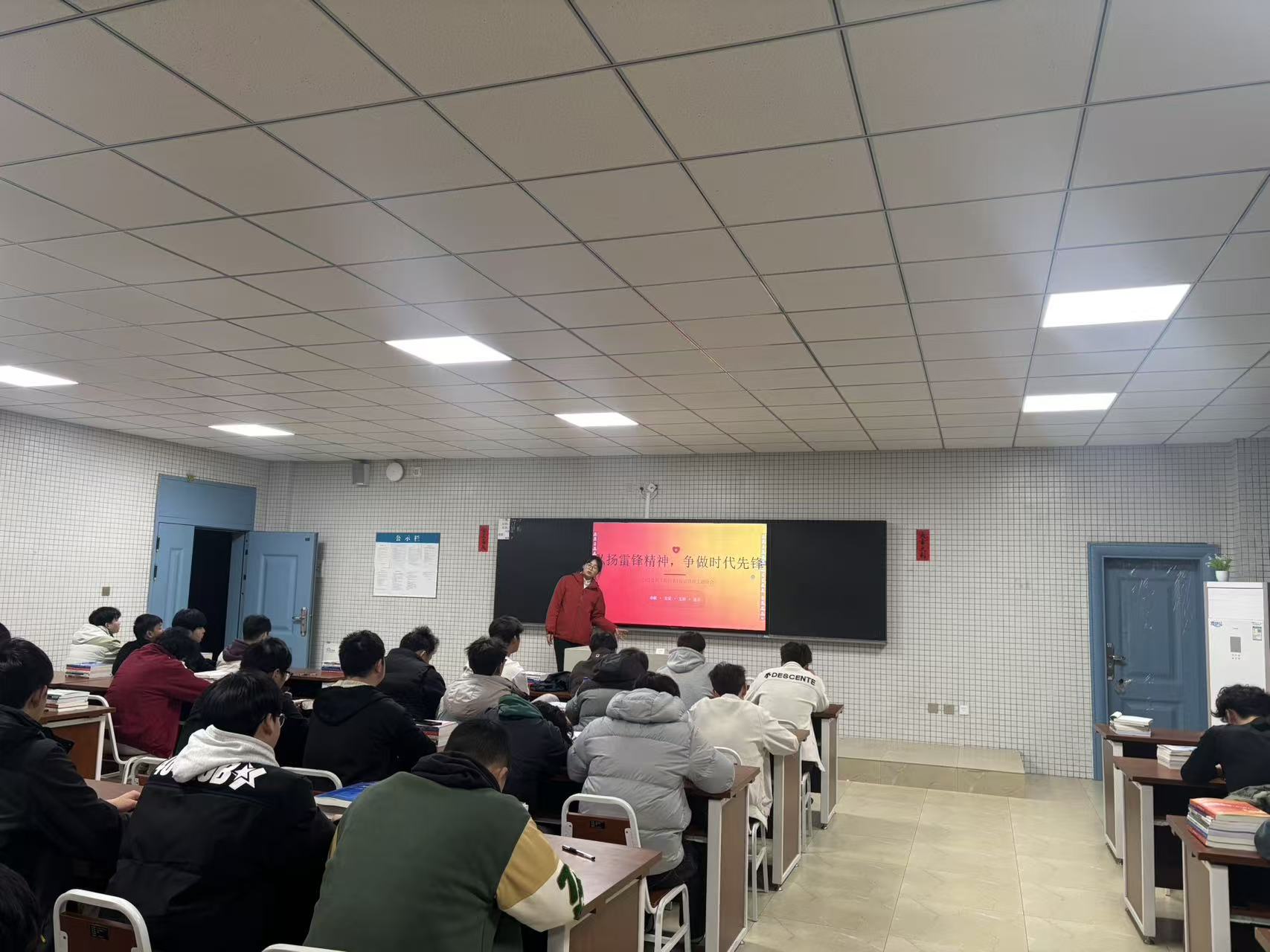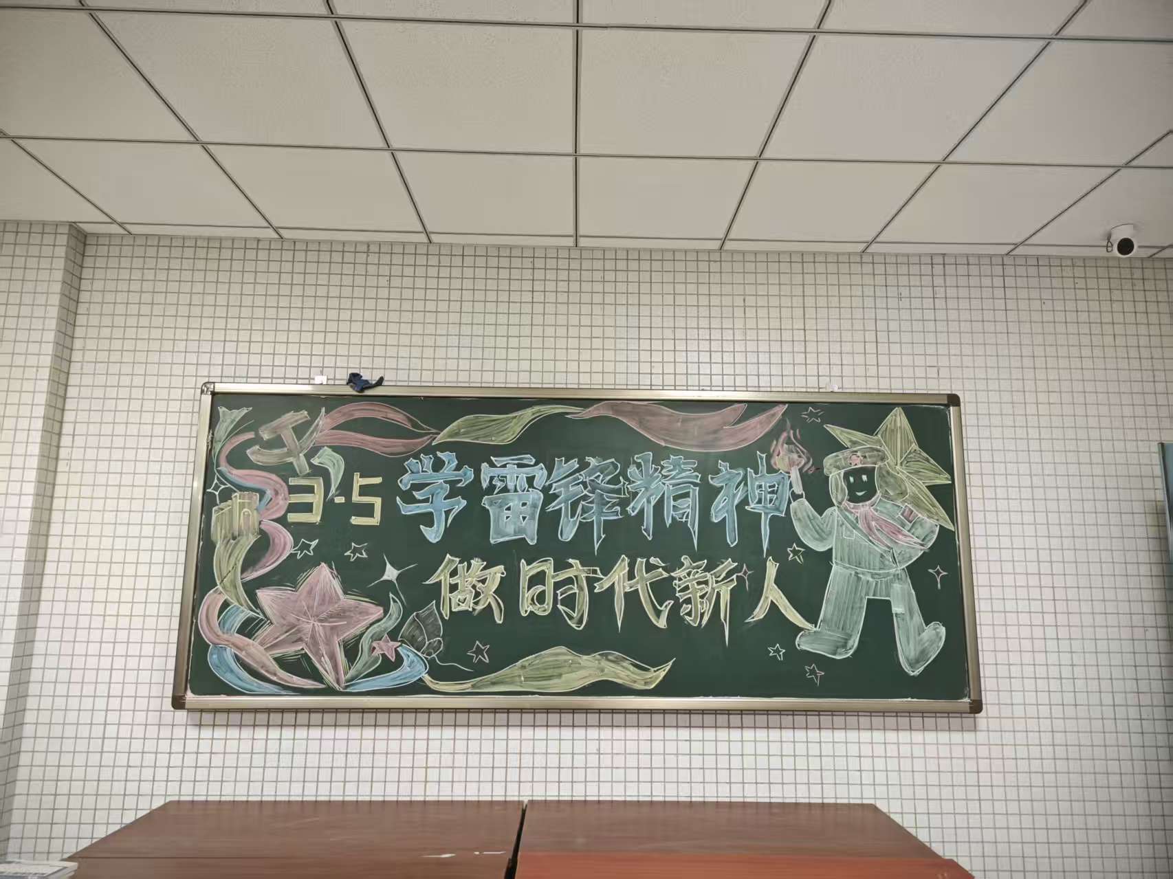 以美化人:部分班级绘制学雷锋主题板报,融入计算机元素和卡通形象,既弘扬传统美德,又彰显学院特色,营造良好班级氛围。