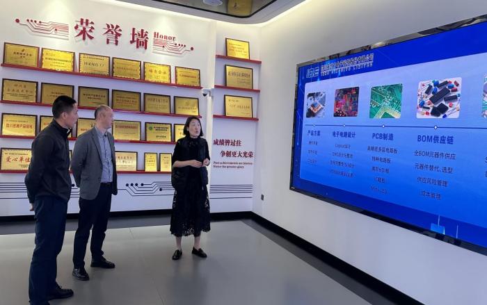 企业人事总监许冬梅热情接待学院一行,首先围绕企业发展规划、核心技术、业务板块、企业文化及人才招聘计划进行全面讲解,结合电子信息行业发展趋势,分析当下行业紧缺人才类型与核心技能要求。随后,带领学院一行实地参观企业各工作岗位,深入了解岗位工作内容、技术应用场景及人才培养需求,让学院全面把握企业用人动态。