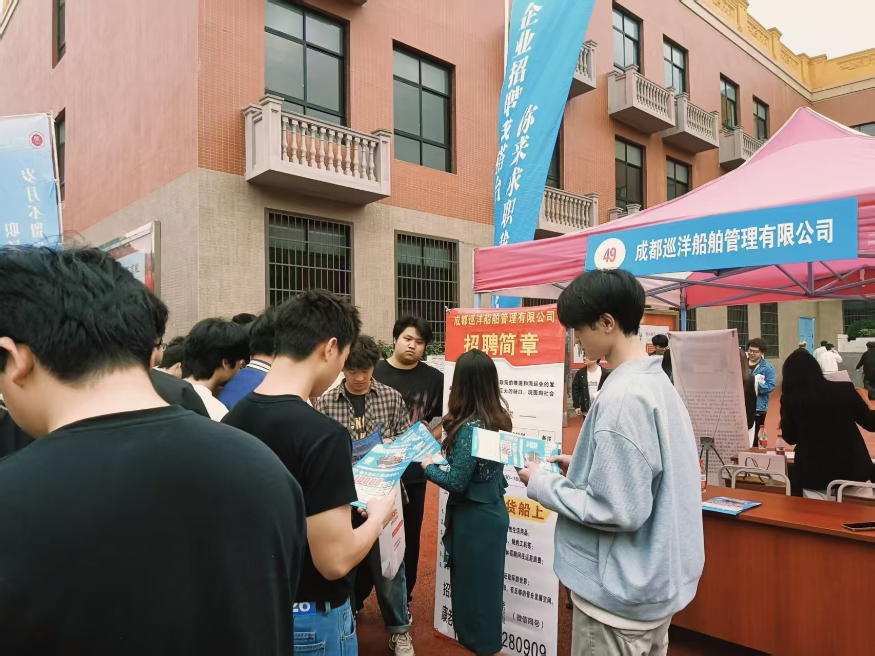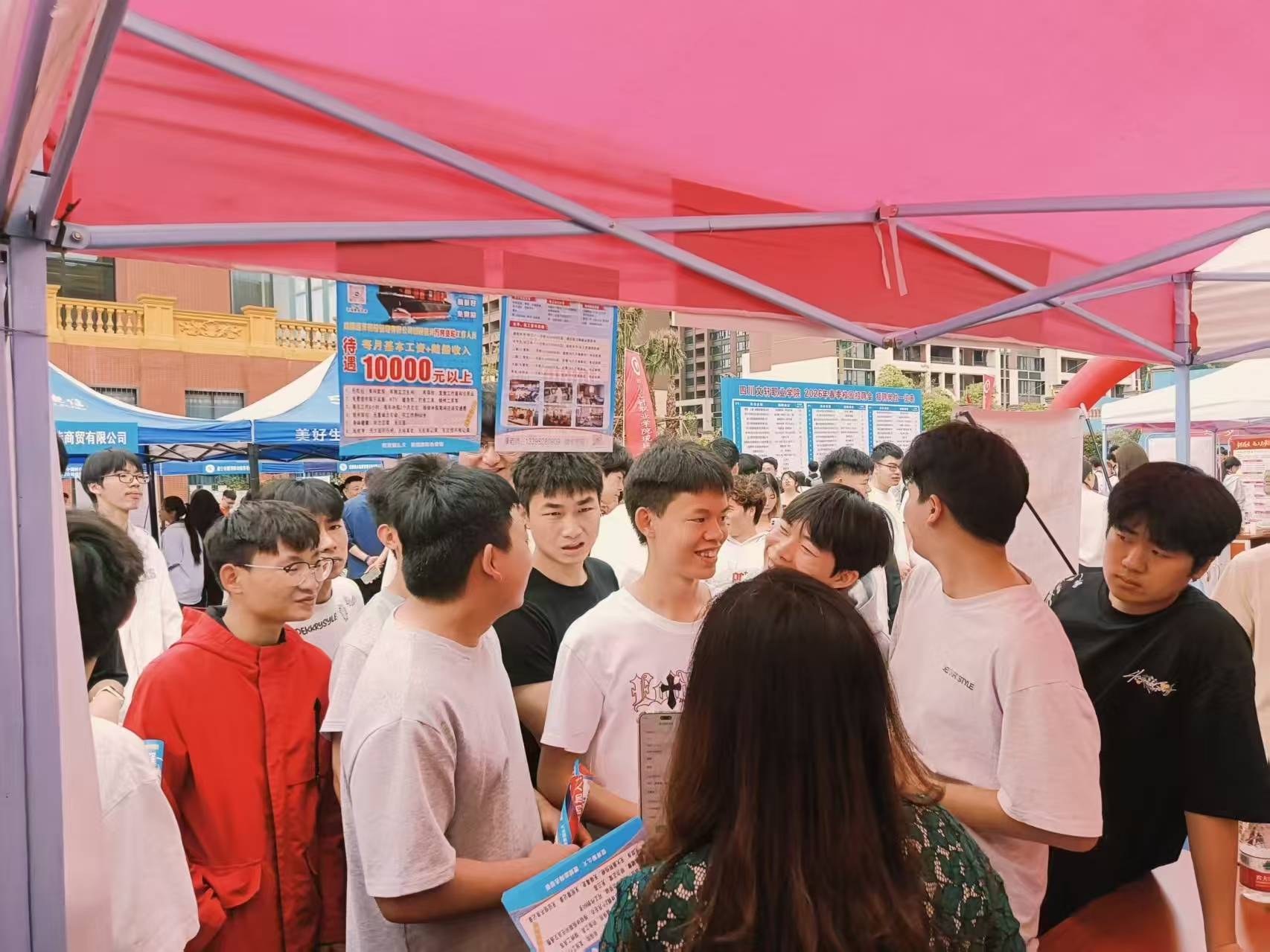 4月15日,我校2026年春季校园大型招聘会在九号体育馆外举行。传媒学院组织2023级返校学生16人精准求职,并派出2024级10个班级现场观摩,现场共投递简历53份。