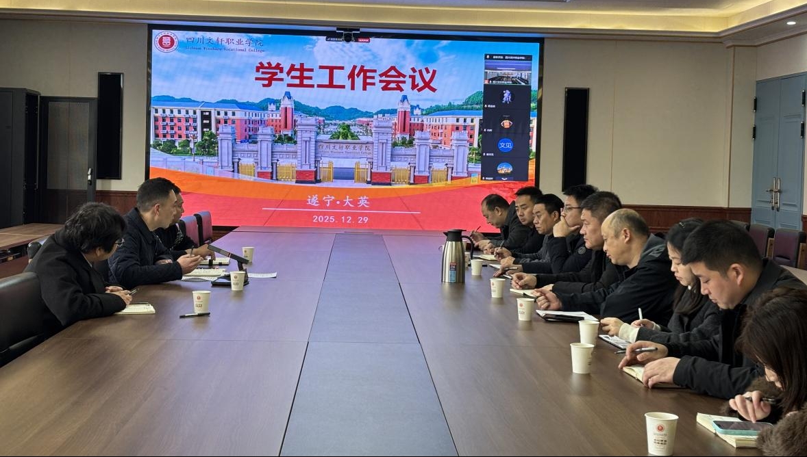 12月29日下午,遂宁校区在27栋308会议室召开学生工作会议,学院副校长张杳主讲,遂宁校区学生工作处处长任舒麟、副处长龚光强及各二级学院院长参加,成都校区学生工作处处长、各二级学院院长线上与会。