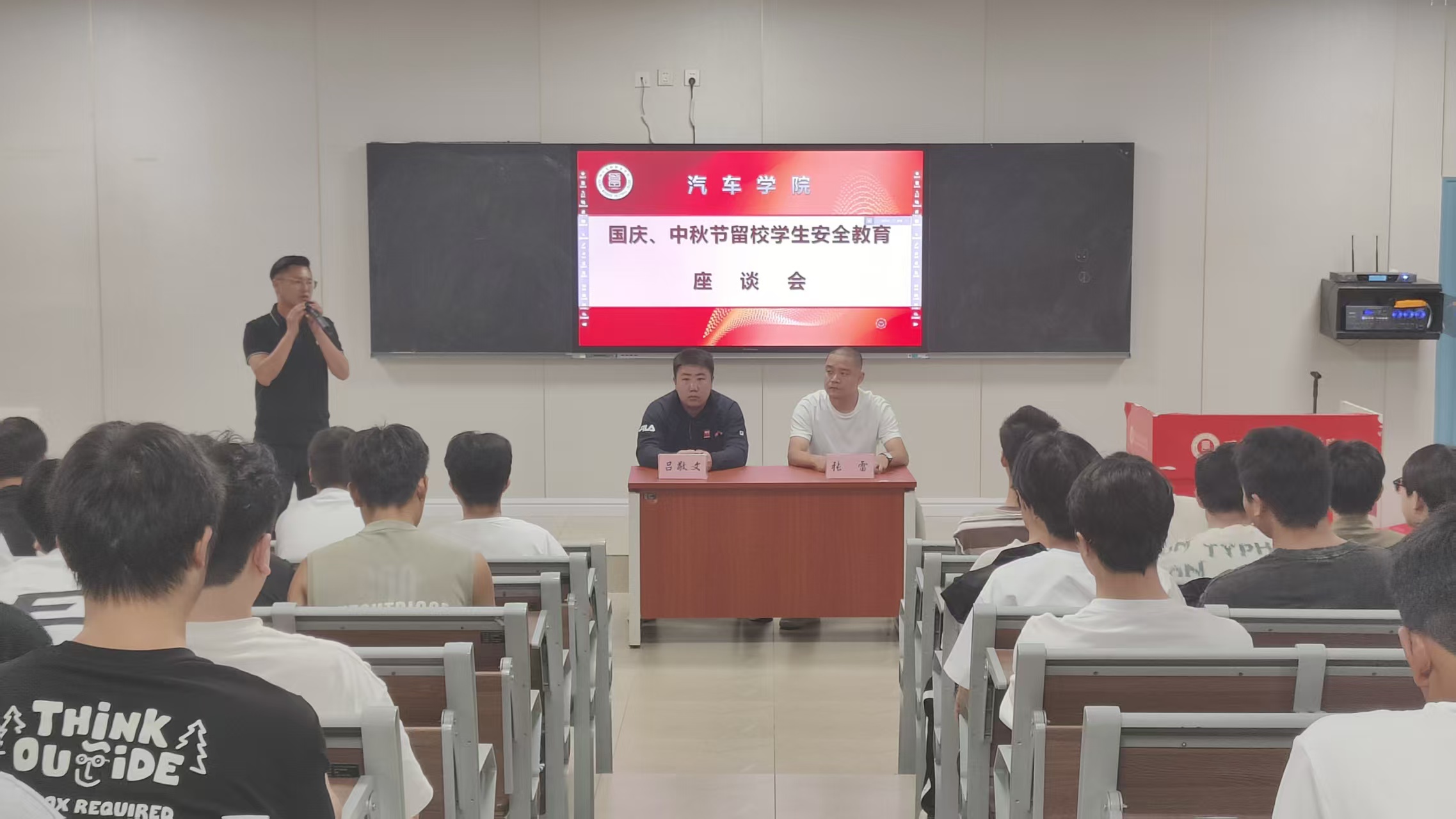 为落实学校假期安全管理工作要求,切实保障留校学生节日期间的学习、生活安全,让学子们在校园中感受家的温暖,9 月 29 日 19 时,汽车学院于1教 116 教室召开国庆、中秋节留校学生安全教育座谈会。学院副院长张雷、办公室主任吕敬文出席会议并讲话,会议由辅导员吉史瓦格主持。