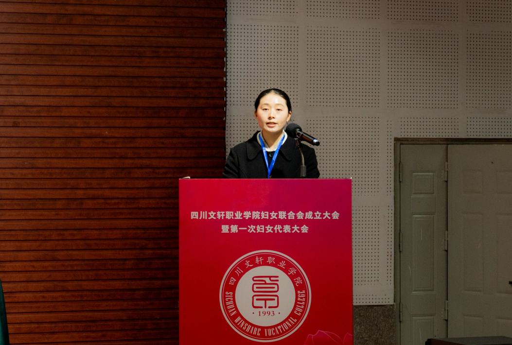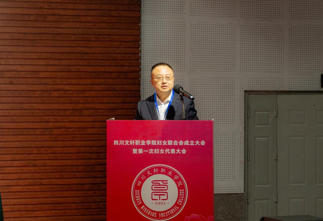 余文盛代表学校党委,向学校妇联的成立以及当选的第一届妇联主席、副主席、委员表示热烈祝贺,并向全体与会代表及全校女教职工和学生致以亲切问候。他指出,学校正处在谋划“十五五”发展规划、心无旁骛迎接职业院校办学能力评价的关键时期。希望广大女同胞筑牢信仰之基,做政治坚定、胸怀大局的“明白人”;砥砺奋斗之志,做爱岗敬业、建功立业的“实干家”;涵养文明之美,做弘扬新风、促进和谐的“引领者”;锤炼过硬本领,做勤学笃行、全面发展的“新女性”。以本次大会为新的起点,更加紧密地团结在以习近平同志为核心的党中央周围,在学校理事会和党委的坚强领导下,奋力谱写四川文轩职业学院高质量发展新篇章,为实现中华民族伟大复兴的中国梦,贡献无愧于时代的巾帼智慧和力量。