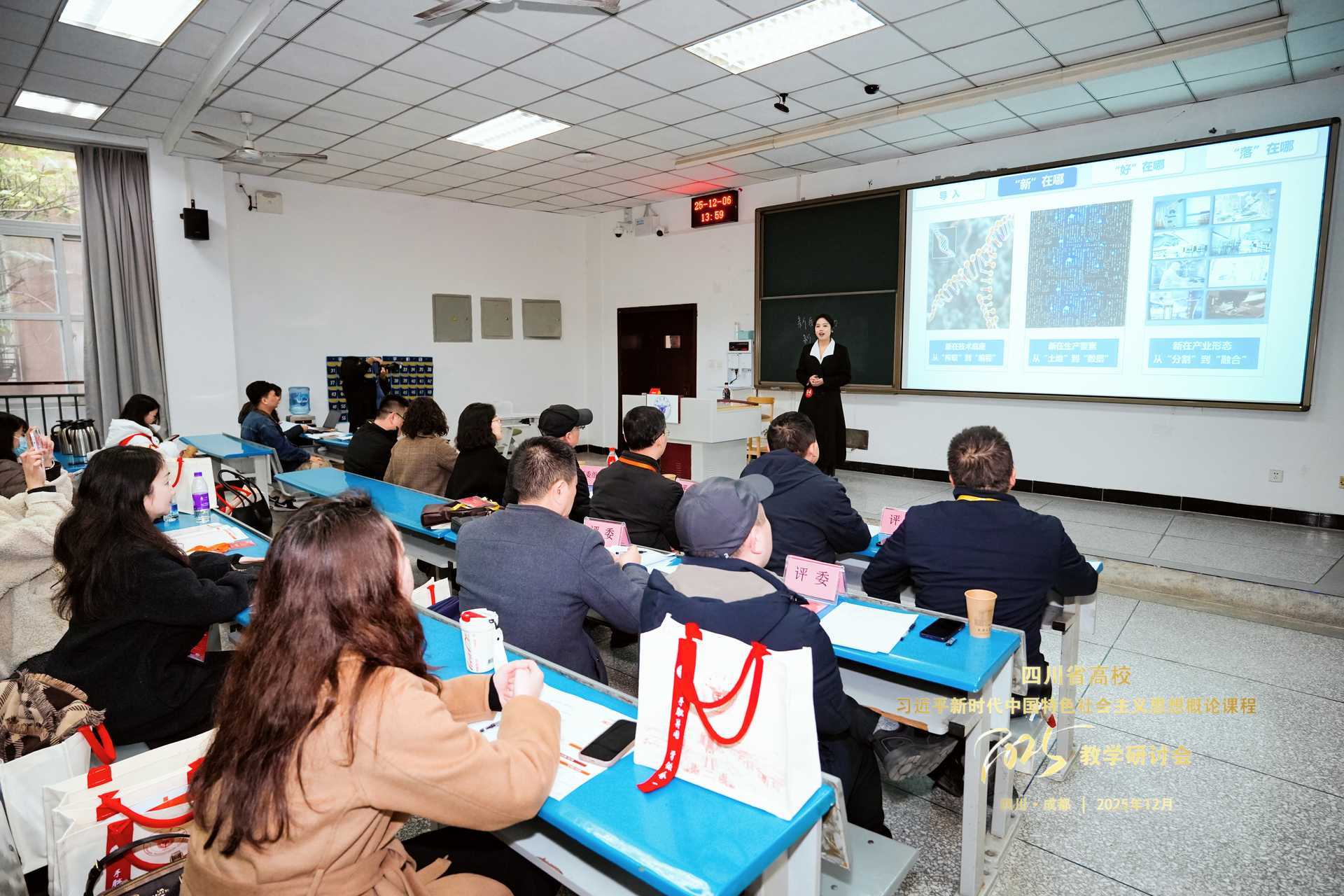 12月6日,从全省高校《习近平新时代中国特色社会主义思想概论》课程2025年教学研讨会暨教学竞赛现场传来捷报,我校马克思主义学院教师王妍以《从“满足甜味”到“追求健康”:新质生产力助力高质量发展》为题,融合党的二十届四中全会精神,以扎实的理论功底、创新的教学设计和生动的课堂呈现在来自74所高校的思政教师中脱颖而出,荣获一等奖。