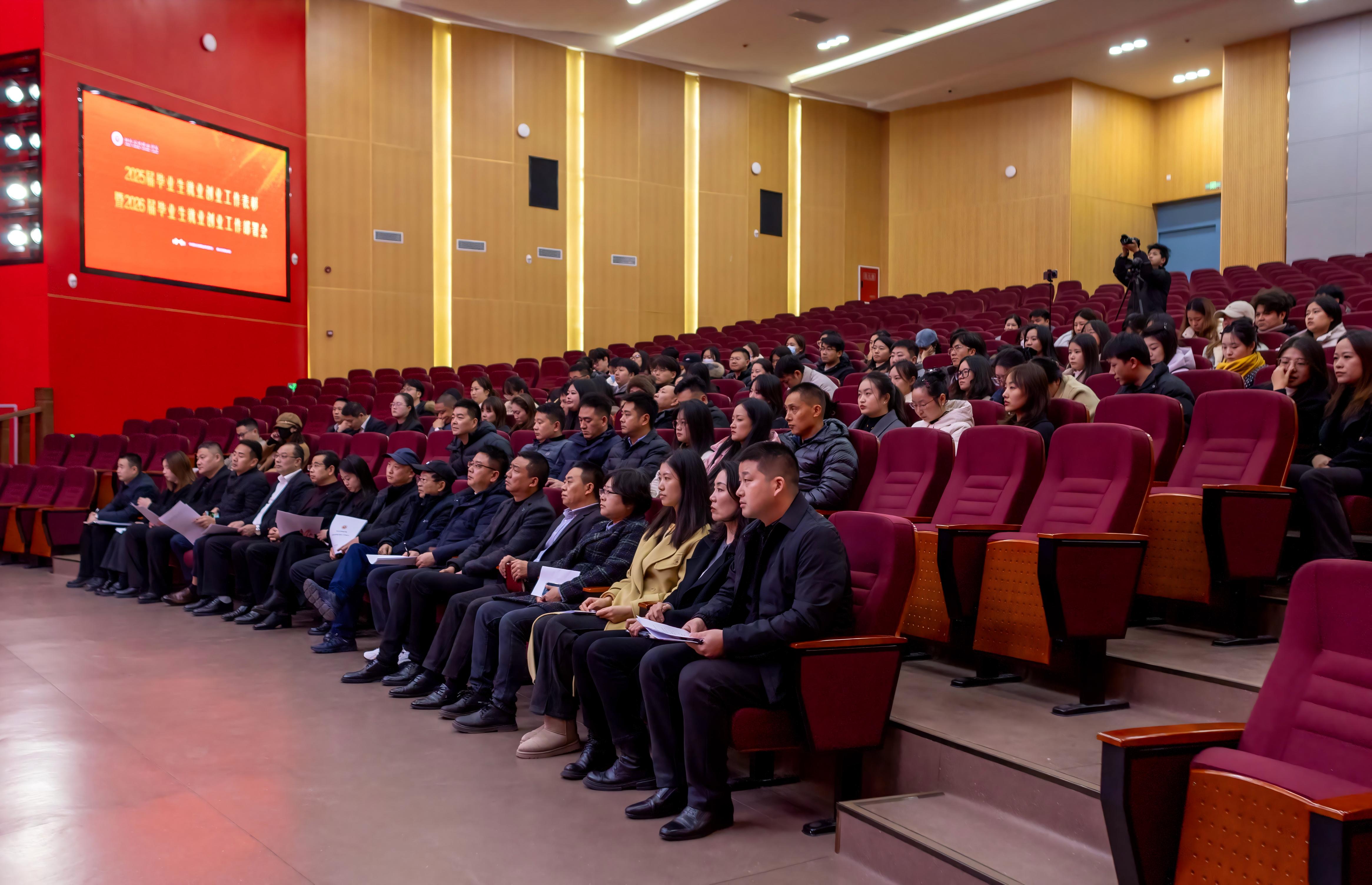 12月17日,学校在遂宁校区学术报告厅召开2025届毕业生就业创业工作总结表彰暨2026届毕业生就业创业工作部署会。就业工作领导小组成员、相关校领导、遂宁校区各二级学院班子成员及相关职能部门负责人、全体辅导员参加会议,成都校区设分会场。会议由党委副书记、常务副校长李军主持,党委书记余文盛讲话。