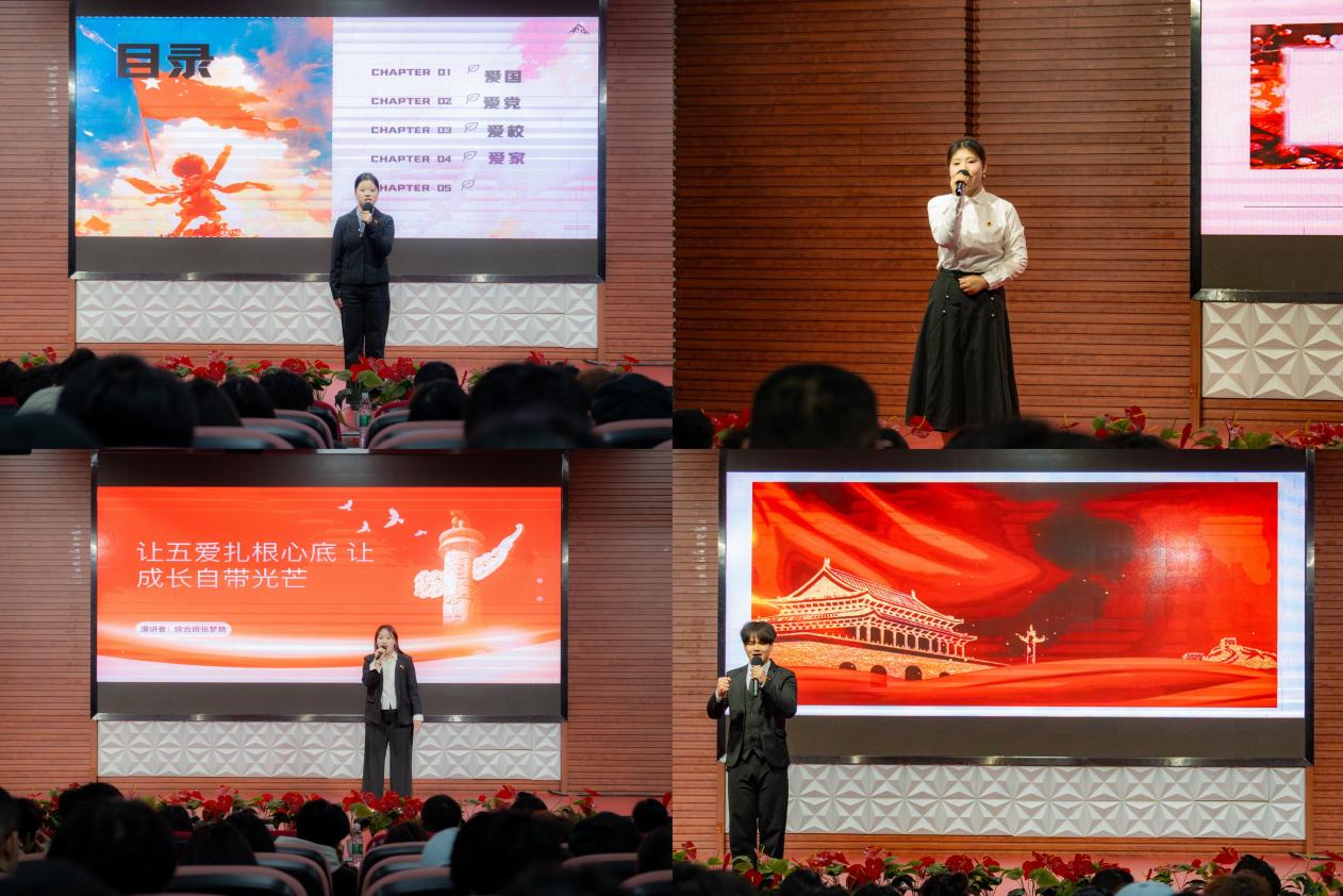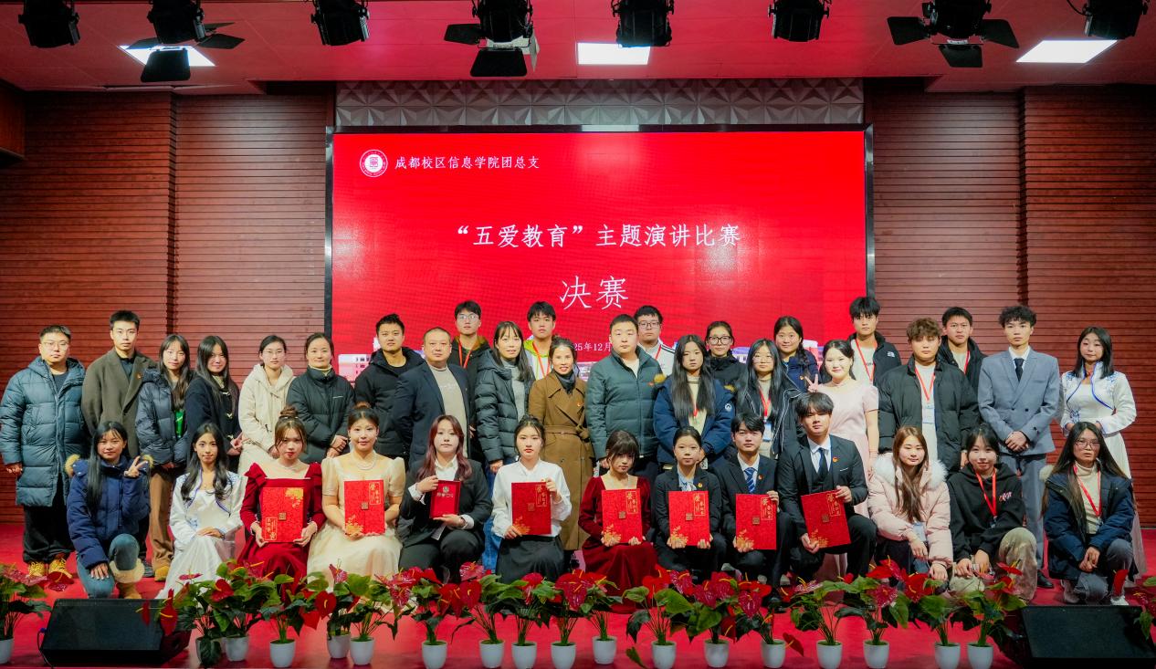为深入践行 “五爱”精神教育理念,引导青年学子厚植家国情怀、争做时代青年。2025 年 12 月 11 日晚 7 点,四川文轩职业学院成都校区信息学院第一届 “五爱教育” 主题演讲比赛决赛在阶梯教室隆重举行。全院师生齐聚现场,共同聆听青春与热爱的碰撞,见证责任与担当的传递。