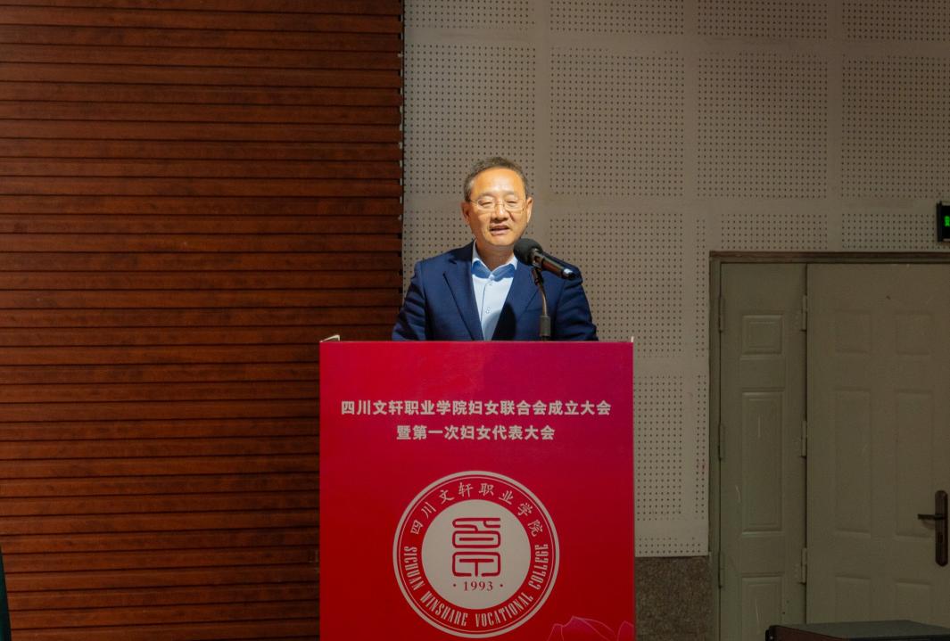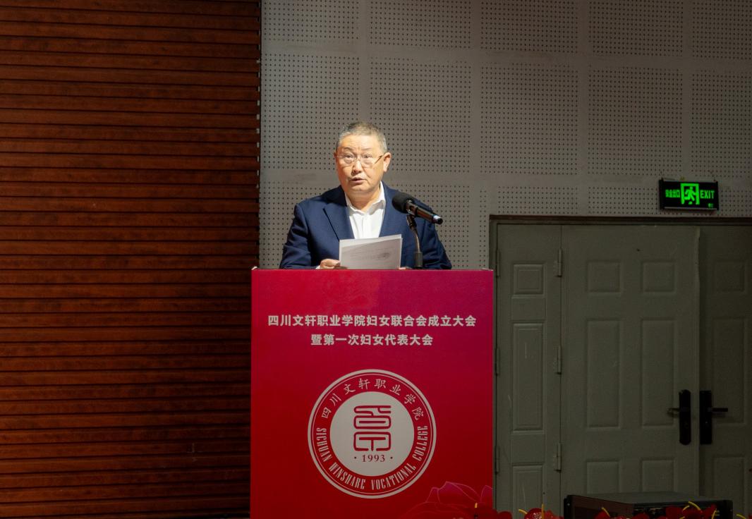 余文盛代表学校党委,向学校妇联的成立以及当选的第一届妇联主席、副主席、委员表示热烈祝贺,并向全体与会代表及全校女教职工和学生致以亲切问候。他指出,学校正处在谋划“十五五”发展规划、心无旁骛迎接职业院校办学能力评价的关键时期。希望广大女同胞筑牢信仰之基,做政治坚定、胸怀大局的“明白人”;砥砺奋斗之志,做爱岗敬业、建功立业的“实干家”;涵养文明之美,做弘扬新风、促进和谐的“引领者”;锤炼过硬本领,做勤学笃行、全面发展的“新女性”。以本次大会为新的起点,更加紧密地团结在以习近平同志为核心的党中央周围,在学校理事会和党委的坚强领导下,奋力谱写四川文轩职业学院高质量发展新篇章,为实现中华民族伟大复兴的中国梦,贡献无愧于时代的巾帼智慧和力量。