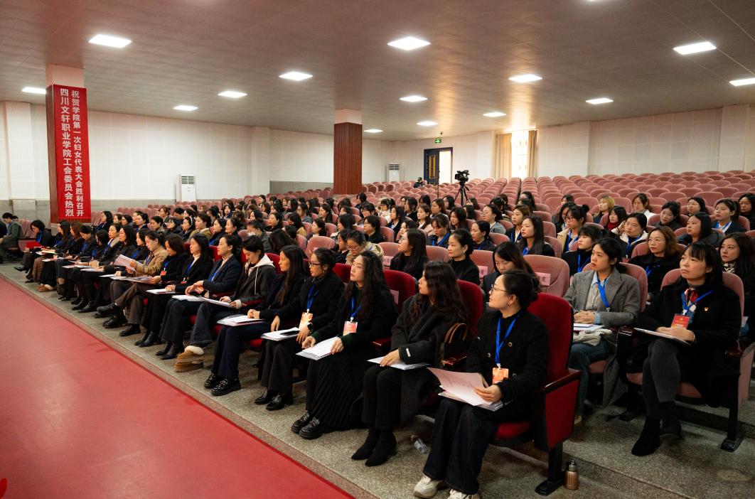 12月10日上午,四川文轩职业学院妇女联合会成立大会暨第一次妇女代表大会在成都校区阶梯教室隆重召开。党委书记、省政府督导专员余文盛,党委副书记、常务副校长李军,副校长、成都校区校长潘光林,副校长、遂宁校区校长周勇,党委副书记谢林见,党委副书记、纪委书记吴松,副校长张杳、王文斌出席大会。大会由学校副校长、工会主席李双李主持。120余名妇女代表齐聚一堂,共赴这场属于全校女教职工与女大学生的重要盛会。