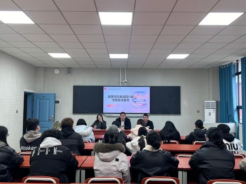 为确保考生平安顺畅地参与考试,提升学生的安全意识与文明素养,健康学院于2025年12月12日在5-413教室开展了大学英语四六级考试考前安全礼仪教育活动,本次活动由辅导员姚开娟主讲。