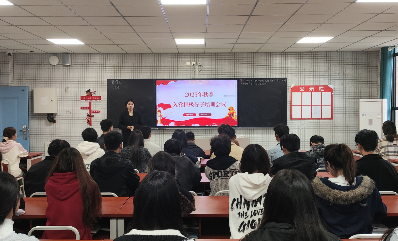 为切实加强入党积极分子队伍建设,确保党员发展质量,城市学院于2025年10月13日组织召开了2025年秋季入党积极分子培训会议。学院党总支书记谢亮、组织委员邓小兰及全体入党积极分子参加了会议。