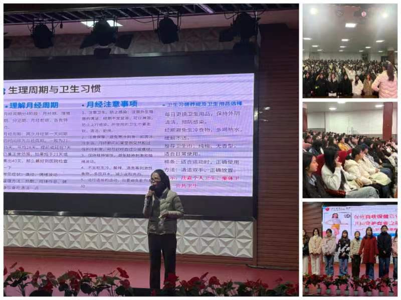 为加强女生健康教育,增强自我保健意识和健康管理能力,帮助同学们树立正确的健康观念。于2025年12月10日,我院在阶梯教室举办了一场主题为“促进自我保健意识,共同守护青春之美”的女生健康知识讲座 。参会女生400多名,由学院学工办主任马莉主持,学院副院长陈国辉以生动的语言和丰富的案例,围绕女性生理健康、心理健康、安全与性教育、自我保护等多个方面进行了深入浅出的讲解。同学们认真聆听,积极互动,纷纷表示收获颇丰,对健康知识有了更全面、更深入了解。