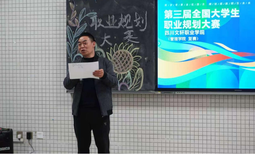 为贯彻落实党中央、国务院关于做好高校毕业生就业工作的决策部署,落实《中共中央办公厅国务院办公厅关于加快构建普通高等学校毕业生高质量就业服务体系的意见》精神,强化高校生涯教育和就业指导,增强大学生职业规划意识,指导其通过学习实践提升综合素质和能力,及早做好就业准备,以择业新观念打开就业新天地,促进高质量充分就业,遂宁校区管理学院于2025年11月25日晚上,在2教112阶梯教室举行“第三届全国大学生职业规划大赛”就业赛道复赛。