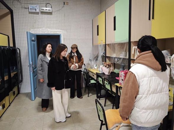 随后,检查组走访学生宿舍,关怀学生假期生活与返校情况,并严格检查消防设施和用电安全。针对过道晾衣架、堆放杂物等问题,辅导员现场进行安全教育并协助整改,确保通道畅通,筑牢校园安全防线。