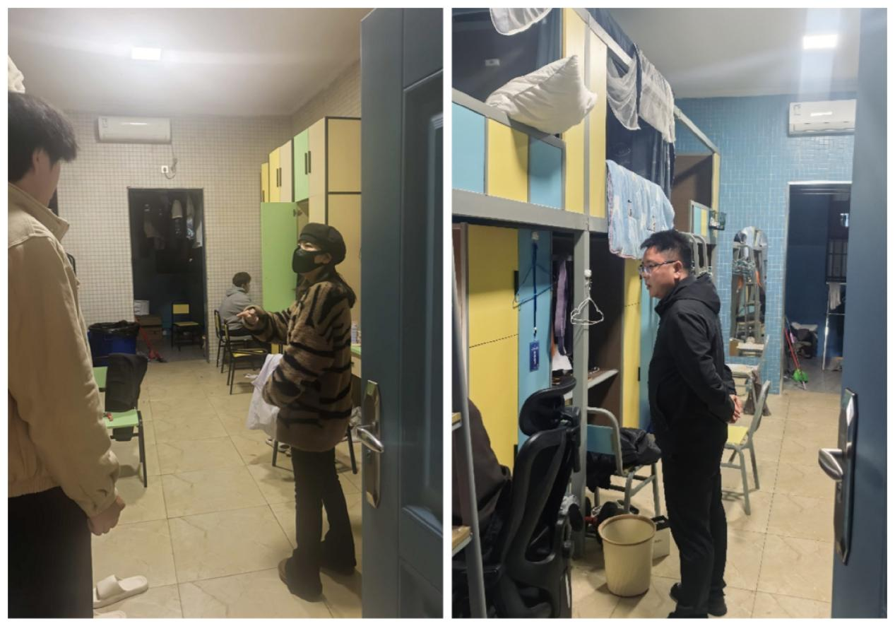 此次走访,安全隐患排查是重中之重,涵盖用电安全、消防安全以及寝室卫生状况等关键领域,在排查过程中,老师与学生亲切交谈,时刻提醒学生把宿舍卫生与安全放在心上。着重强调,宿舍内严禁存放、使用易燃易爆物品和违规电器,杜绝私拉乱接“牵蜘蛛网”。倡导学生养成定期清扫好习惯,共同营造安全干净的宿舍环境。